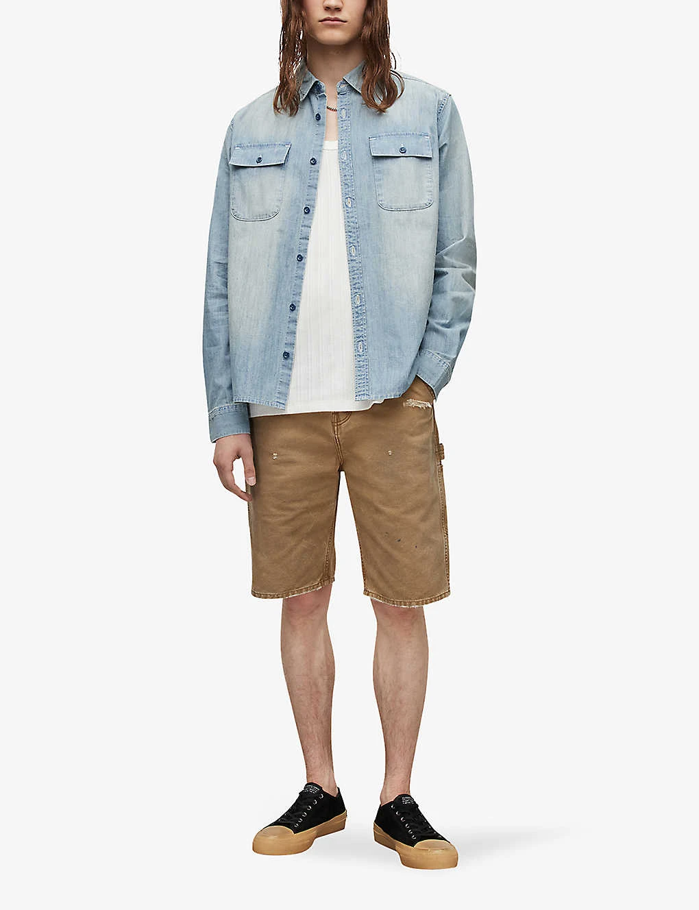 Be the first to review “AllSaints Sire Patch-pocket Regular-fit Recycled-cotton Denim Shirt” Cancel reply