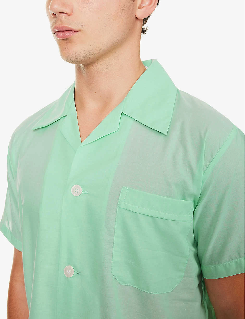 - Relaxed fit, camp collar, short sleeves, patch pocket at chest, pearlescent buttons