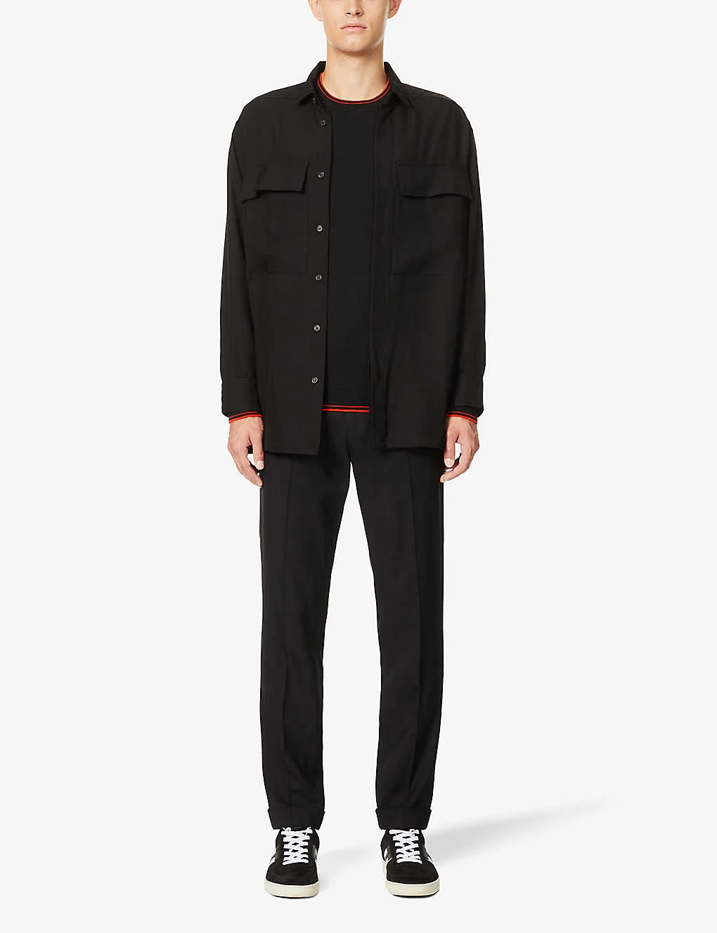 - Crewneck, dropped shoulders, long sleeves, contrasting piping at shoulders, regular fit, contrasting striped ribbed trims
