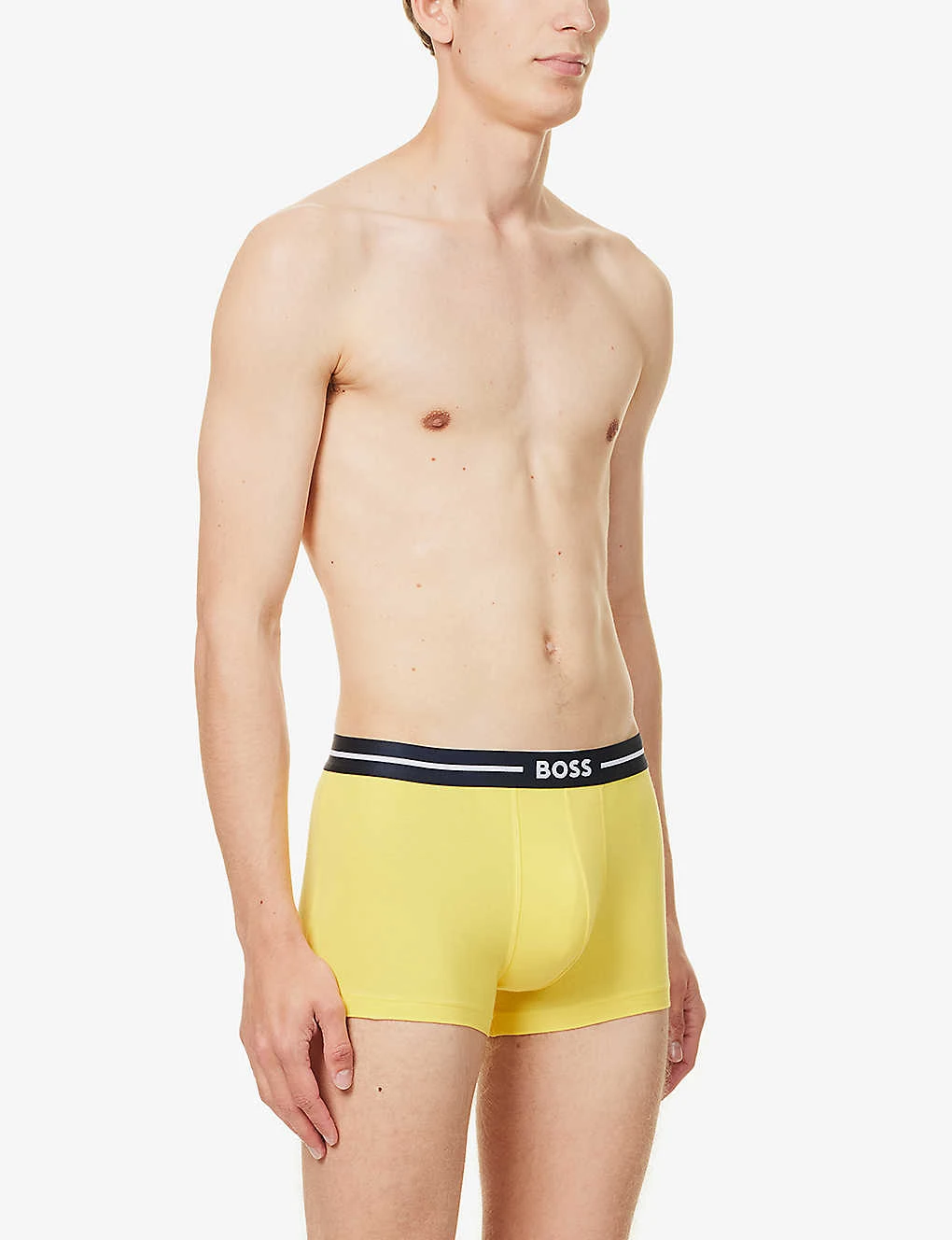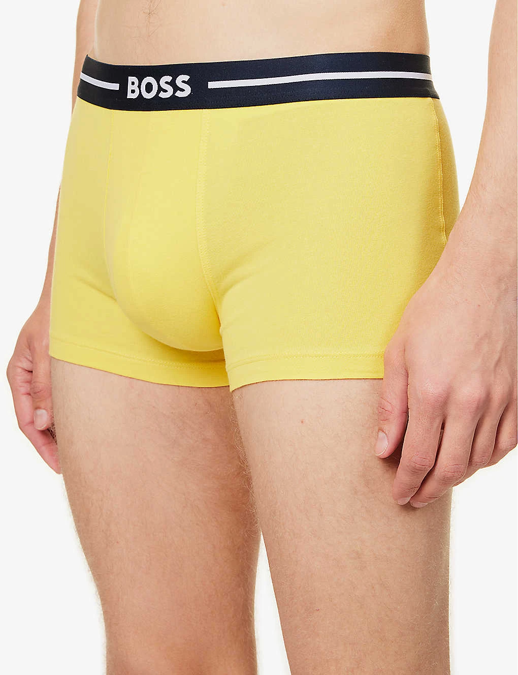 - Mid-rise, branded elasticated waistband, supportive pouch at centre front, tonal stitching