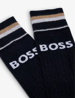 Boss Pack Of Two Stripe-pattern Stretch-cotton Knitted Socks