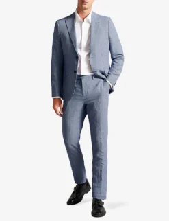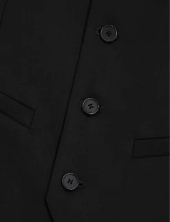 - Regular fit, notched lapels, long sleeves, buttoned cuffs, welt pocket at chest, darts at front, two patch pockets at front, twin vents at back, all-over striped pattern