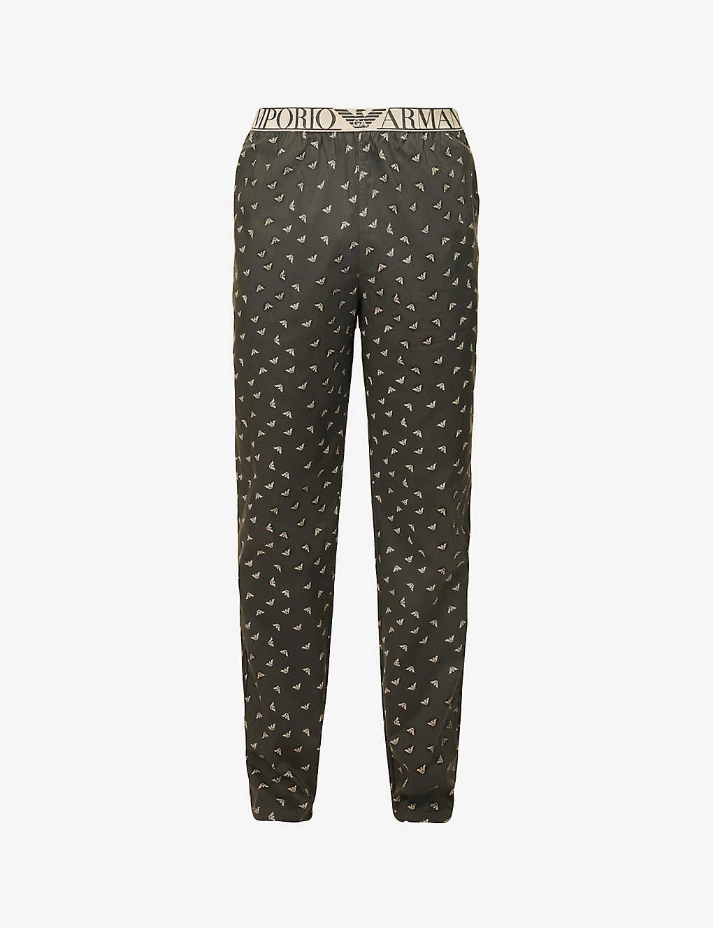Emporio Armani Branded-waistband Logo-print Cotton-poplin Pyjama Bottoms