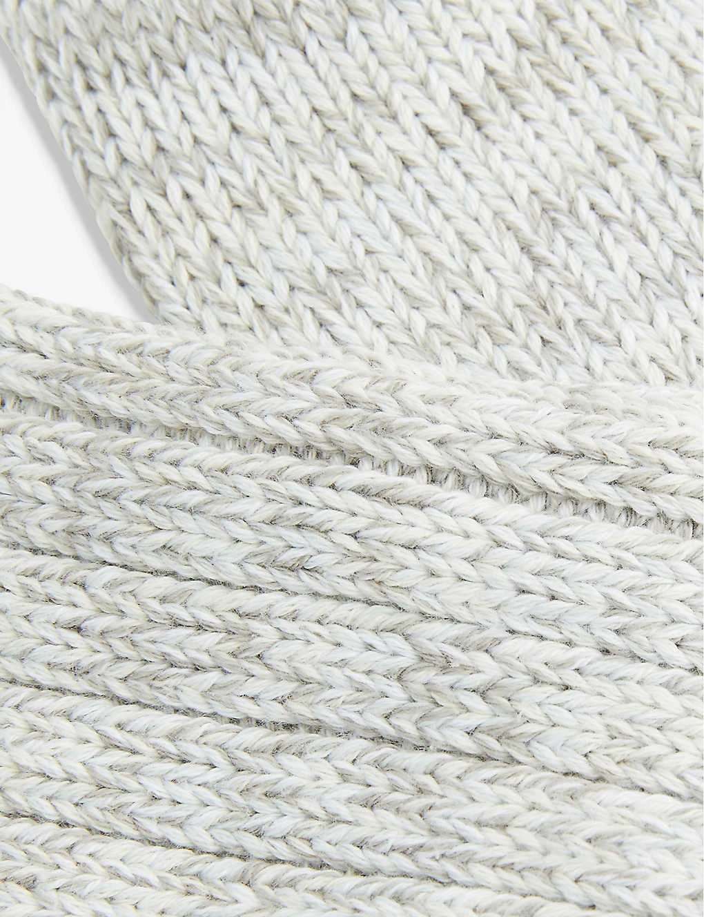 - Ankle rise, ribbed elasticated cuffs, brand print sole, all over cable-knit-pattern