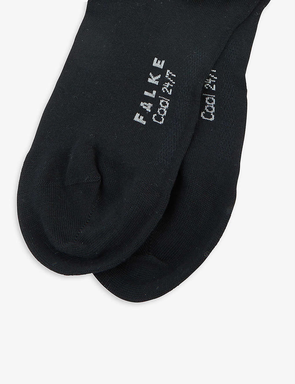 - Ankle rise, ribbed elasticated cuffs, brand print at sole, all over fine knit pattern, round toe