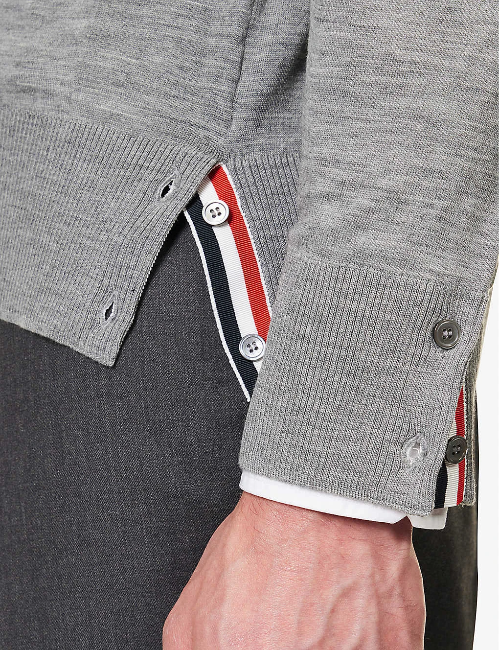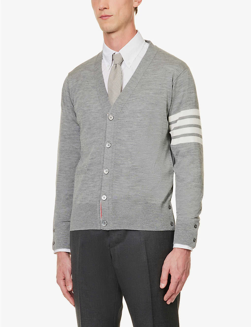 Be the first to review “Four-bar V-neck Regular-fit Wool-knitted Cardigan” Cancel reply