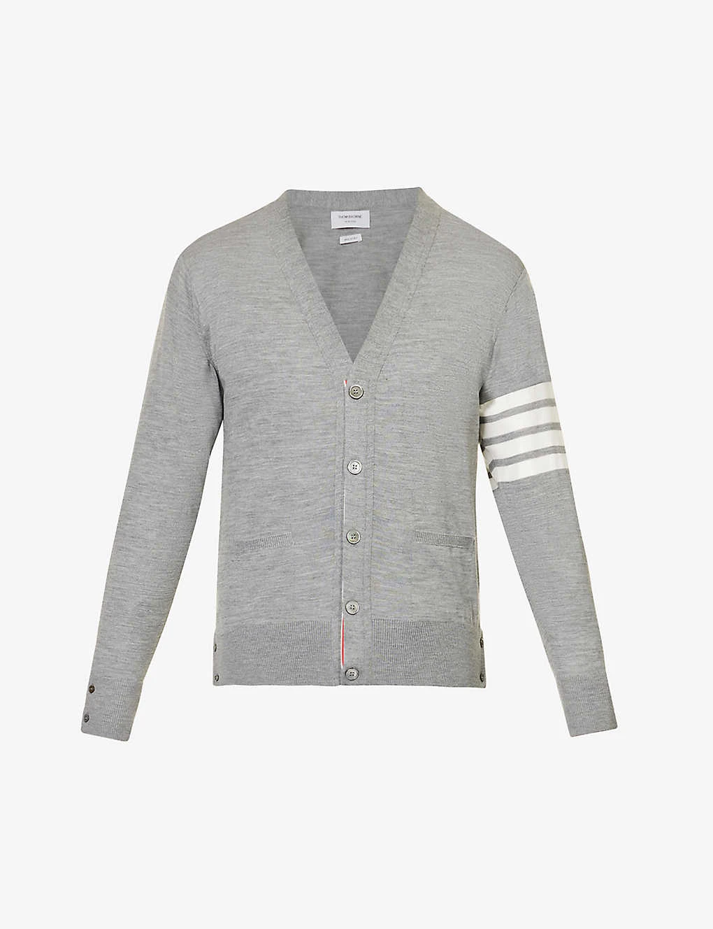 Four-bar V-neck Regular-fit Wool-knitted Cardigan