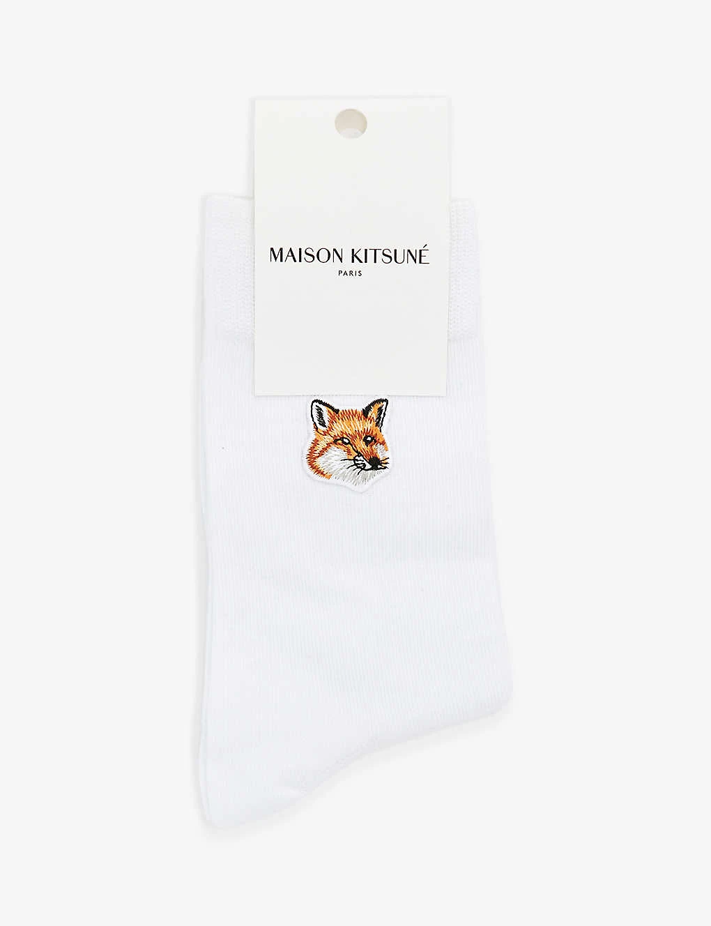 - Ankle rise, ribbed elasticated cuffs, brand print sole, fox patch at sides, fine-knit texture