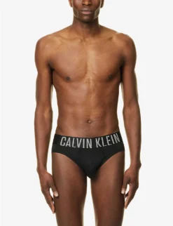 - Slim fit, low rise, branded elasticated waistband, supportive pouch at centre front, all-over stripe pattern, fine knit