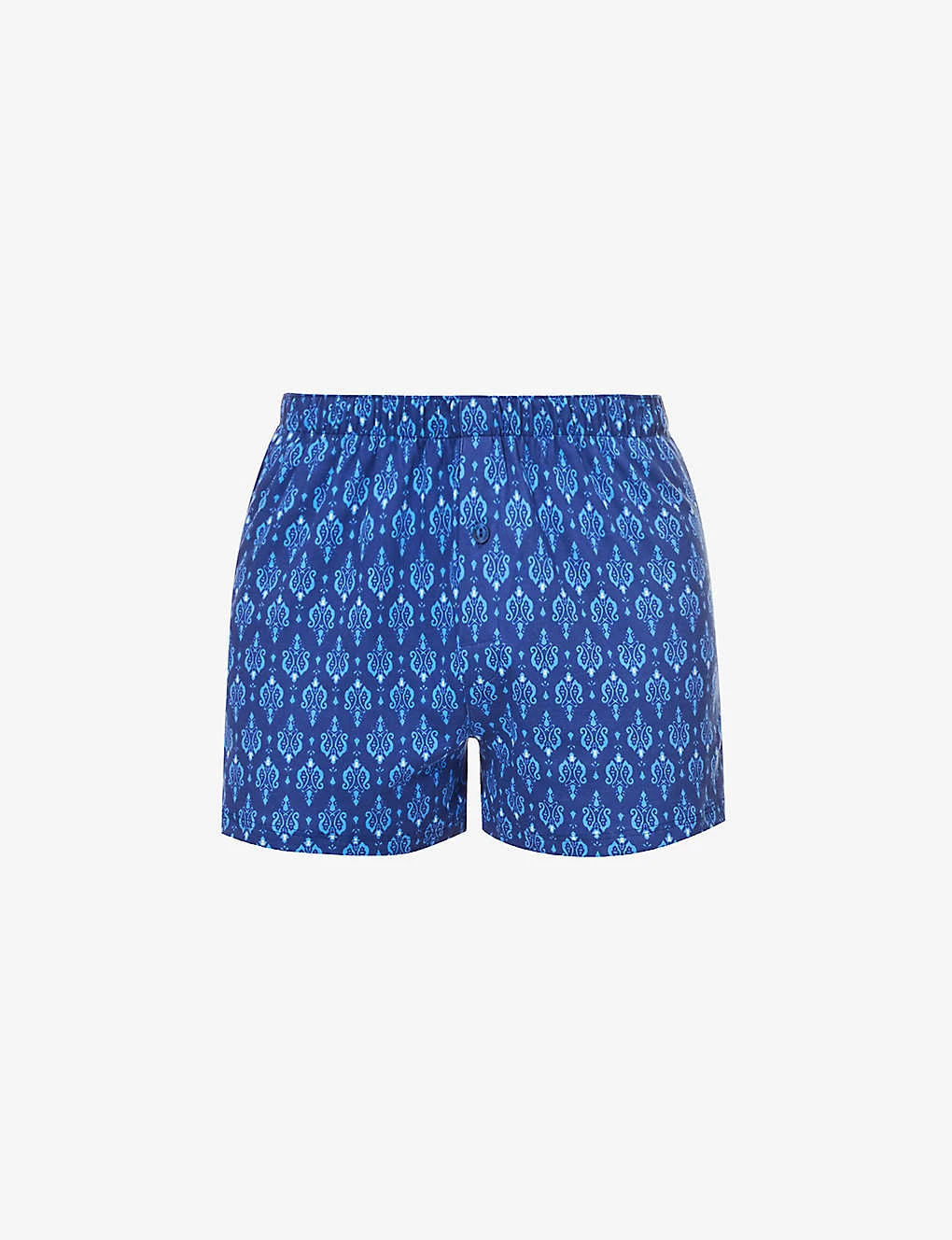 - Mid-rise, elasticated waistband, branded buttons, all-over print
