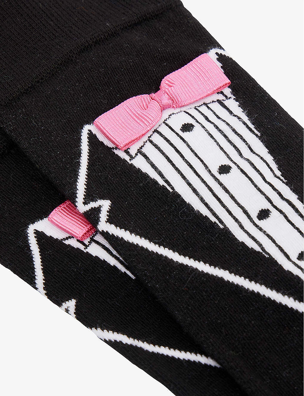- Ankle rise, ribbed elasticated cuffs, brand print sole, graphic print and bow embellishment at sides, fine-knit texture