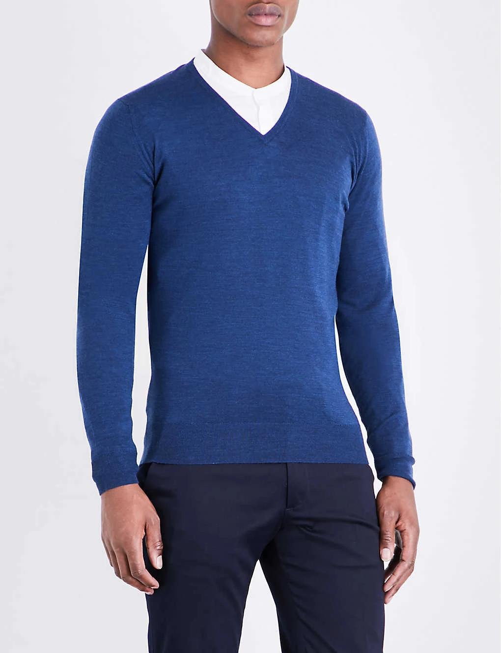 JOHN SMEDLEY Blenheim V-neck Wool Jumper