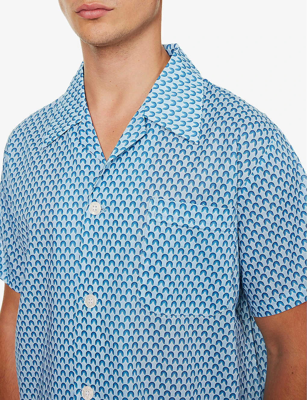 - Relaxed fit, camp collar, short sleeves, patch pocket at front, all over graphic print, straight hem