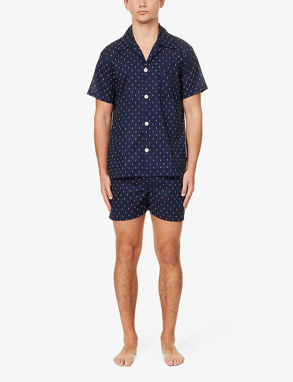 - Relaxed fit, camp collar, short sleeves, pearlescent buttons, patch pocket at chest, two patch pockets at front, brushed texture, all-over print