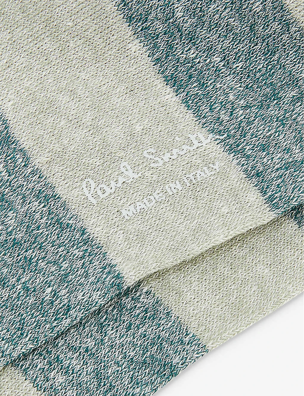 - Crew length, branded at soles, all-over striped pattern, ribbed trims