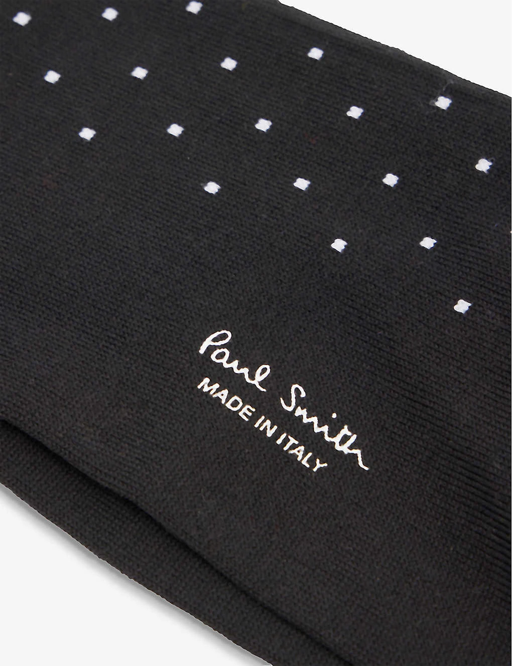 - Ankle rise, ribbed elasticated cuffs, brand print sole, all over polka dot print, contrast panel at heel and toe