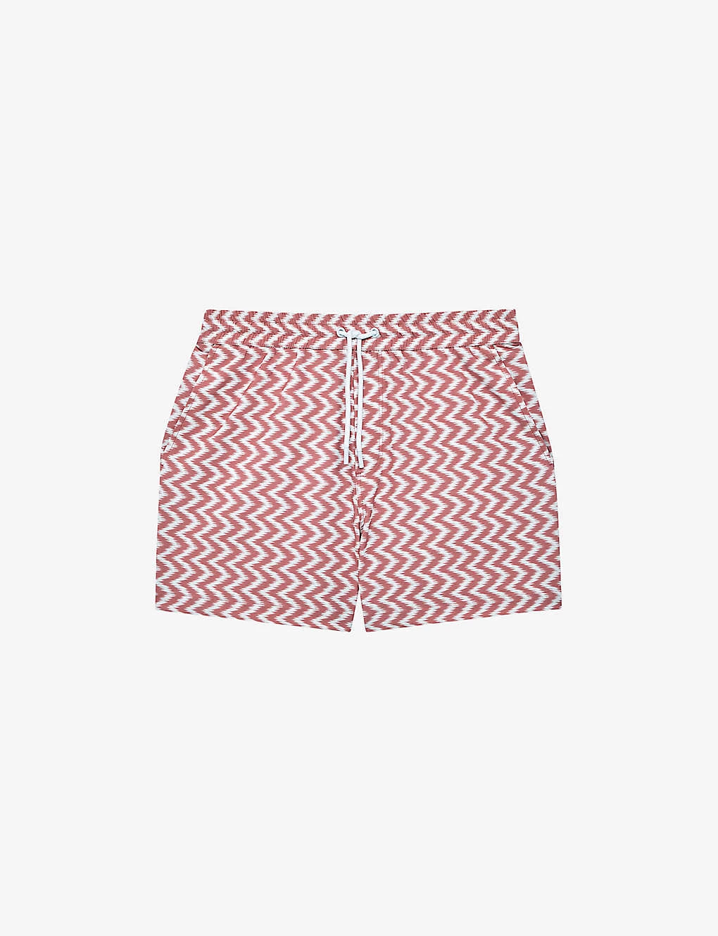 - Regular fit, drawstring waistband, slip side pockets, jet back pocket, all-over zig-zag pattern