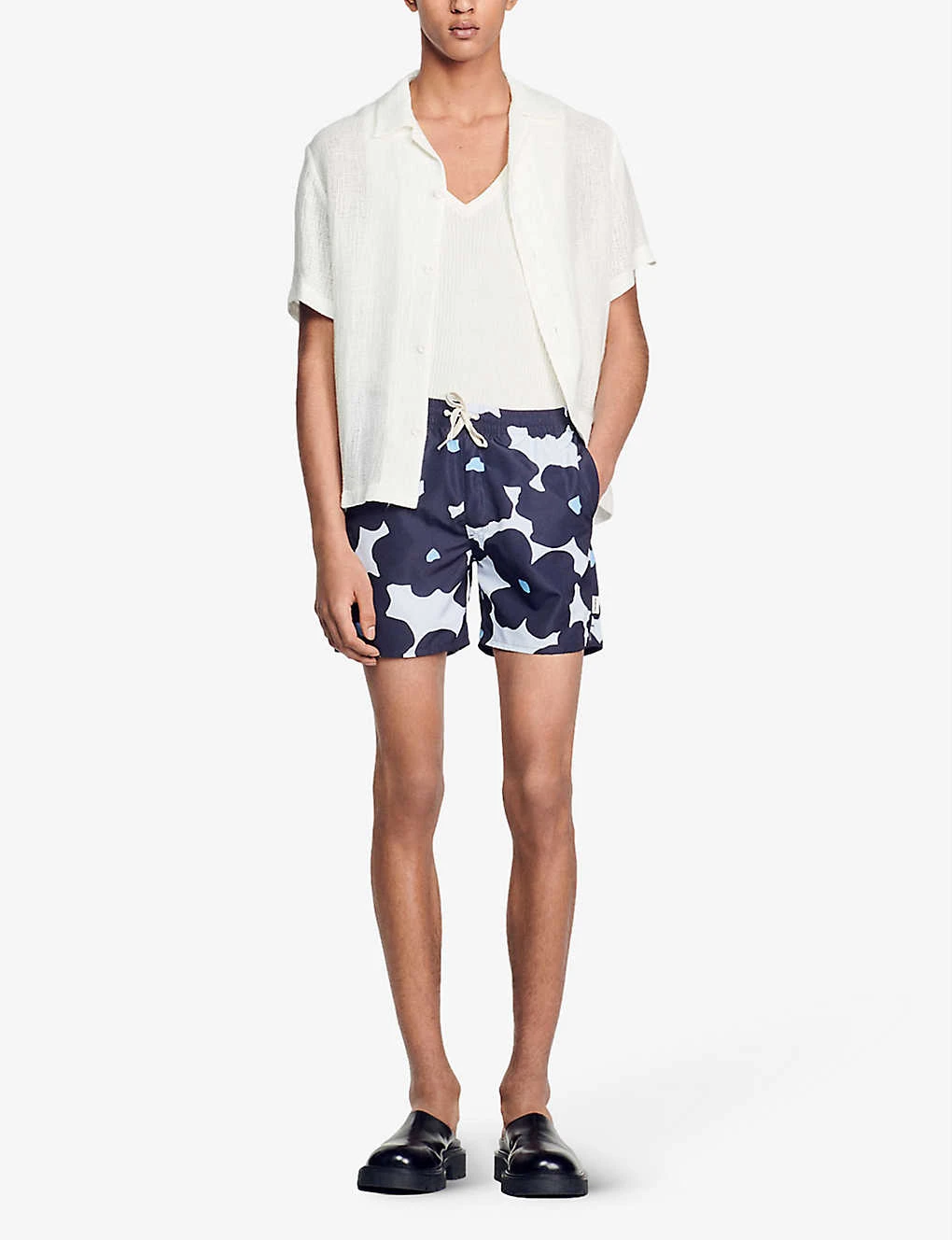 Sandro Flower-print Drawstring-waistband Swim Shorts