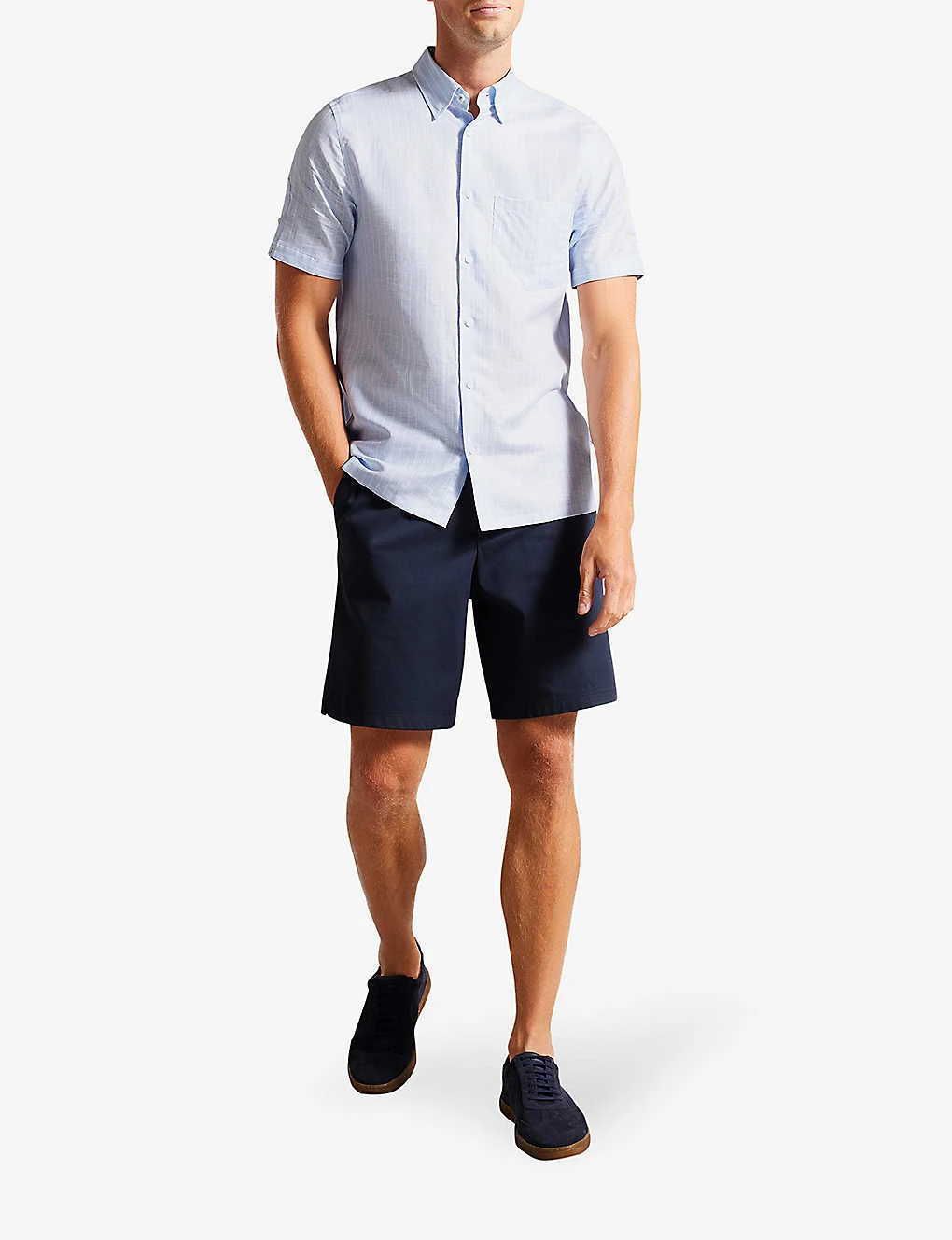 Ted Baker Lytham Striped Short-sleeved Linen And Cotton-blend Shirt