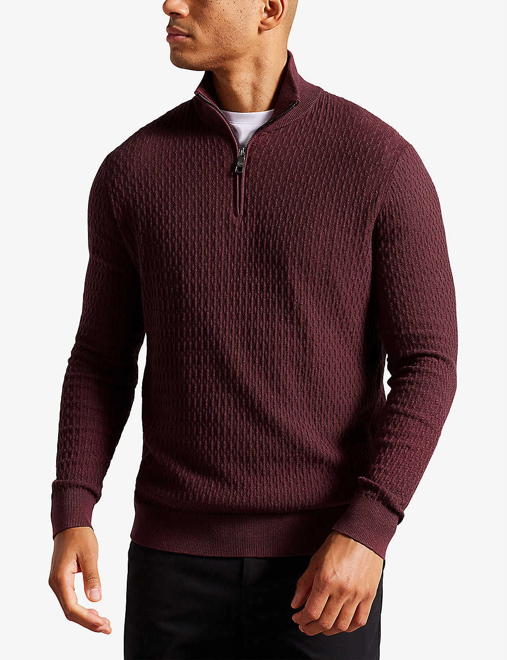 Ted Baker Martenn Half-zip Funnel-neck Cotton-blend Jumper